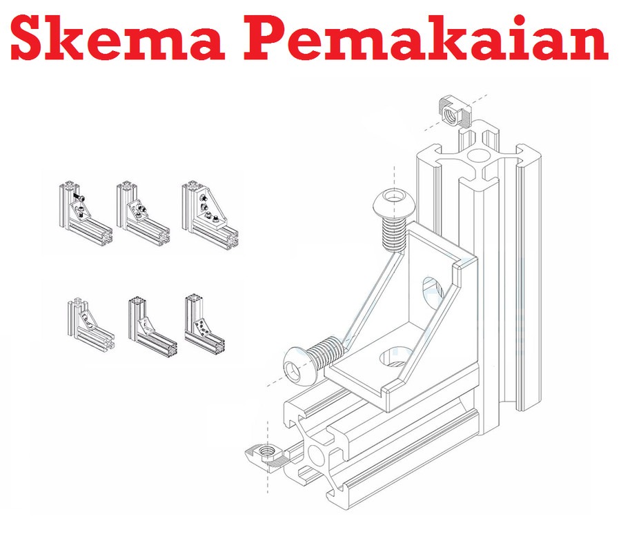 – Produk ini disaran kan dipakai di konektor siku alu slot 2020, bracket siku AP 2020, dll