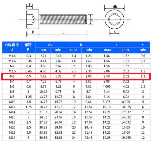 Baut L Hexagon DIN912 M3 3mm Hex 12mm 20mm 30mm