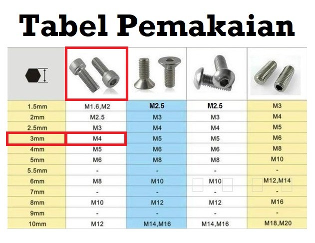 – Gunakan kunci L pengunci yg sesuai yaitu kunci L 3mm ya, cek foto deskripsi