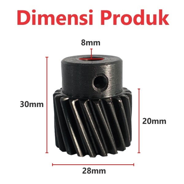 – Banyak gigi 20T dengan bore lubang tengah 8mm