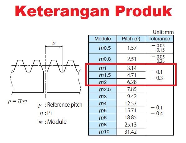 – Pilih rackgear yang sesuai ya, yaitu rackgear helical 1.25M