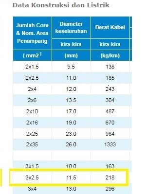 – Type : NYM 3 x 2.5 – Kawat Tunggal