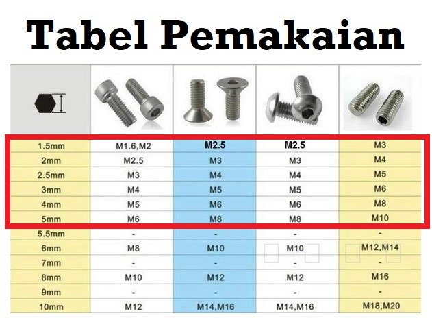 – 1 x Kunci L Ukuran Sesuai dengan variasi yang dipilih ya ๐