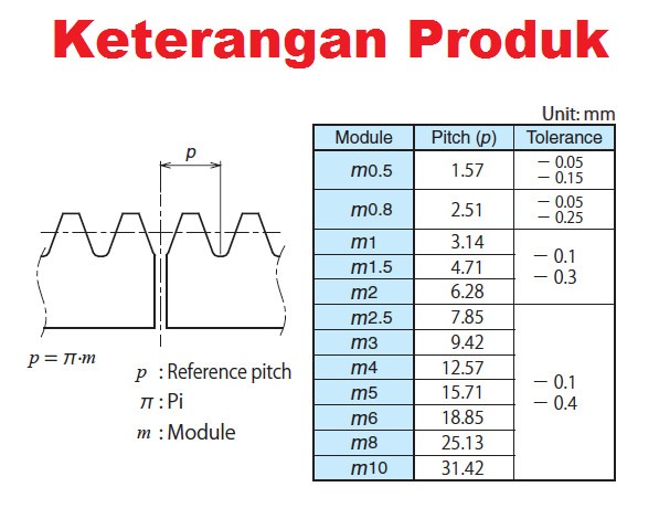 – Gear ini cocok digunakan untuk gear transmisi rackgear mesin CNC Router, Plasma, mesin produksi, Dll.